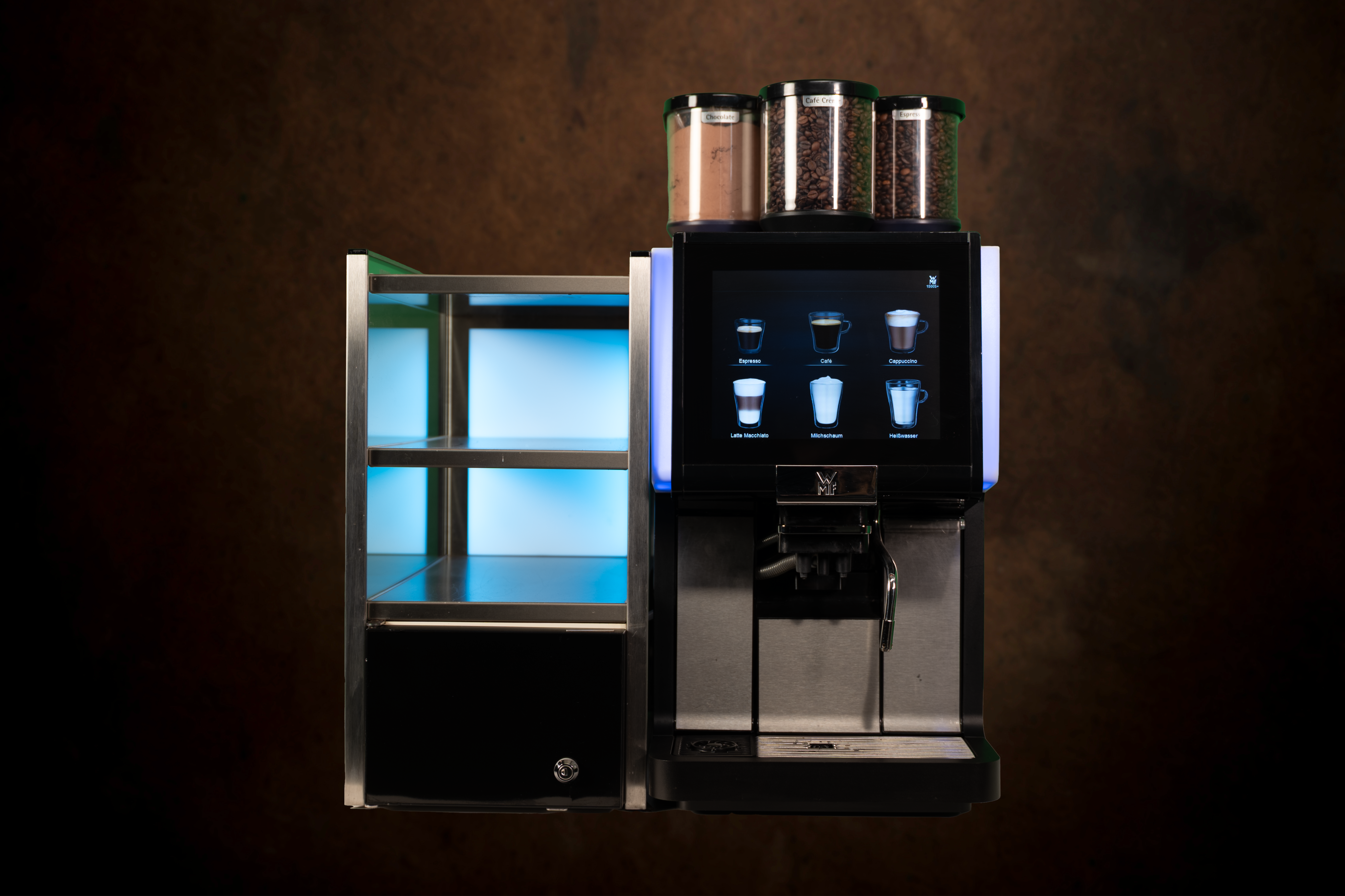 Die WMF 1500S Plus verbindet effiziente Technik mit einem ansprechenden Auftritt, der sich nahtlos in jedes Messestand-Konzept einfügt.