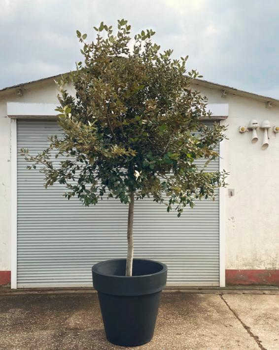 Die Steineiche in der Größe M verbindet mediterrane Robustheit mit einer kompakten, edlen Form. Mit einer Höhe von 3,50 Metern besitzt sie bereits eine beeindruckende Statur, die Räume füllt und strukturiert, ohne dabei so raumgreifend zu sein wie ihre "Mega"-Schwester. Ihr besonderes Merkmal ist das extrem dichte, dunkelgrüne Laub, das aus festen, ledrigen Blättern besteht und eine fast architektonische Schwere ausstrahlt. Diese Dichte macht sie zum idealen "lebenden Vorhang", um VIP-Bereiche abzuschirmen oder Technik-Ecken elegant verschwinden zu lassen. Anders als der luftige Olivenbaum wirkt die Steineiche kompakter und sorgt für visuelle Ruhe und einen dunklen, satten Hintergrund, vor dem helle Möbel oder Dekorationen besonders gut zur Geltung kommen. Als immergrüner Baum garantiert sie zu jeder Jahreszeit ein makelloses, vitales Erscheinungsbild. Wer die Steineiche M wählt, setzt auf kraftvolle Eleganz und einen hochwertigen, blickdichten Rahmen für sein Event.
